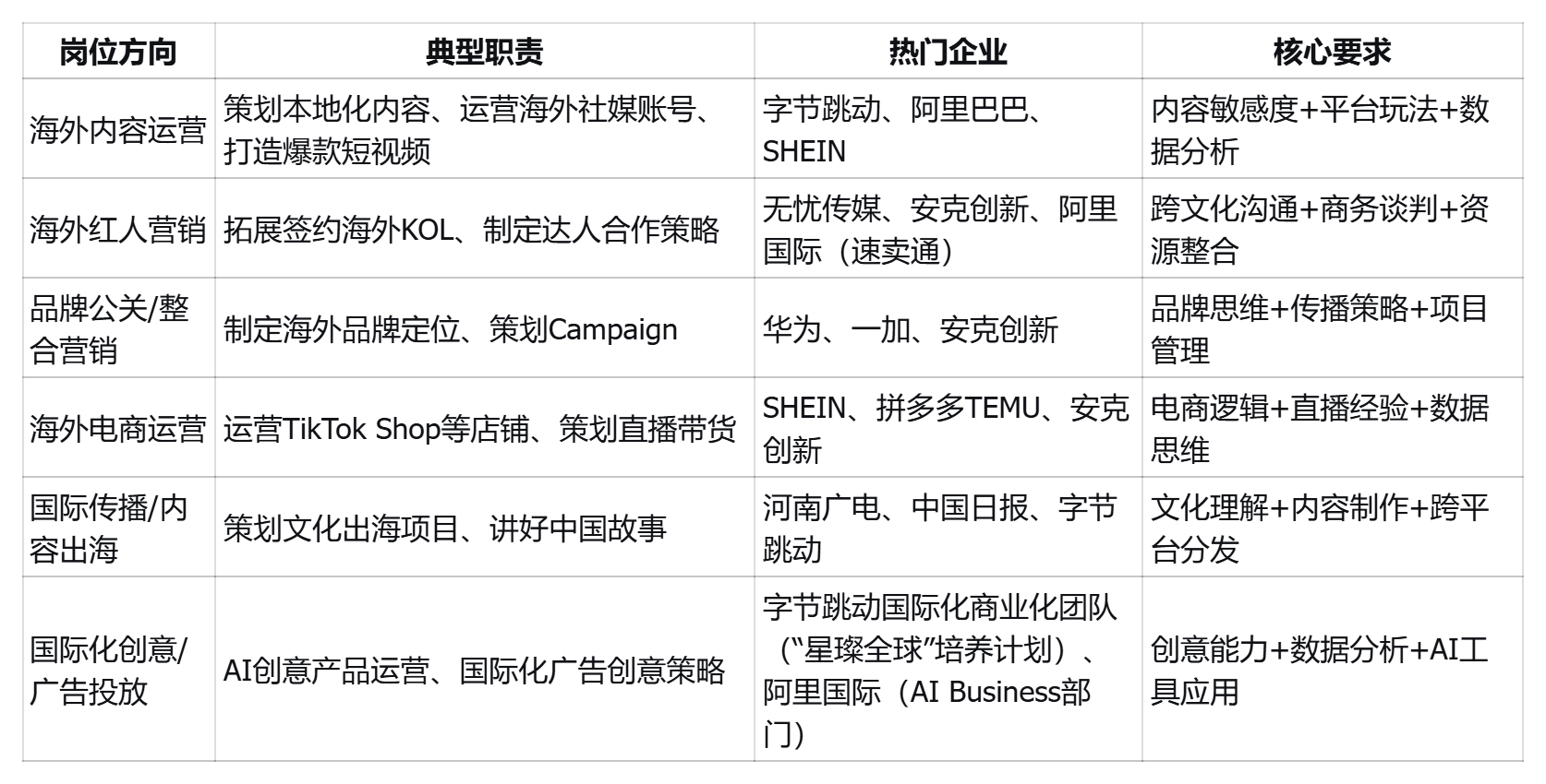 当前头部企业对于“品牌出海”相关的需求正不断增加,给传媒专业的留学生带来更多就业机会。